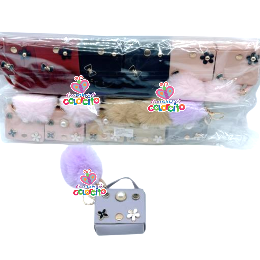 Recuerdos quinceaños. Carterita con diseño pom pom en colores variados. Las entregamos en bolsa de organza y tarjeta con los datos del evento. Medida: 6*4cm. aprox. Listas para regalar!!!