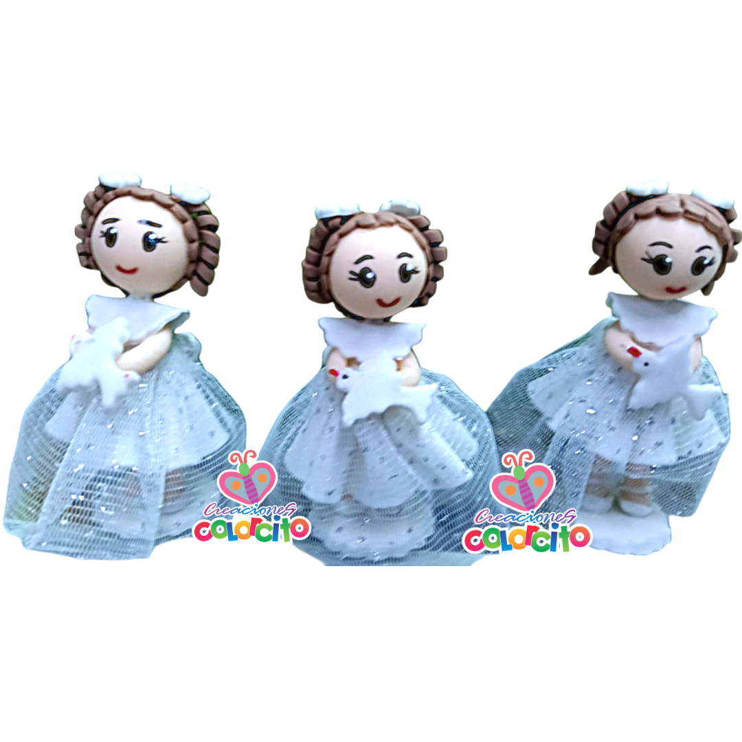 Recuerdos de bautizo – Angelitas en cerámica al frio. Las entregamos en bolsa de organza y tarjeta los datos del evento. Listas para regalar!!!