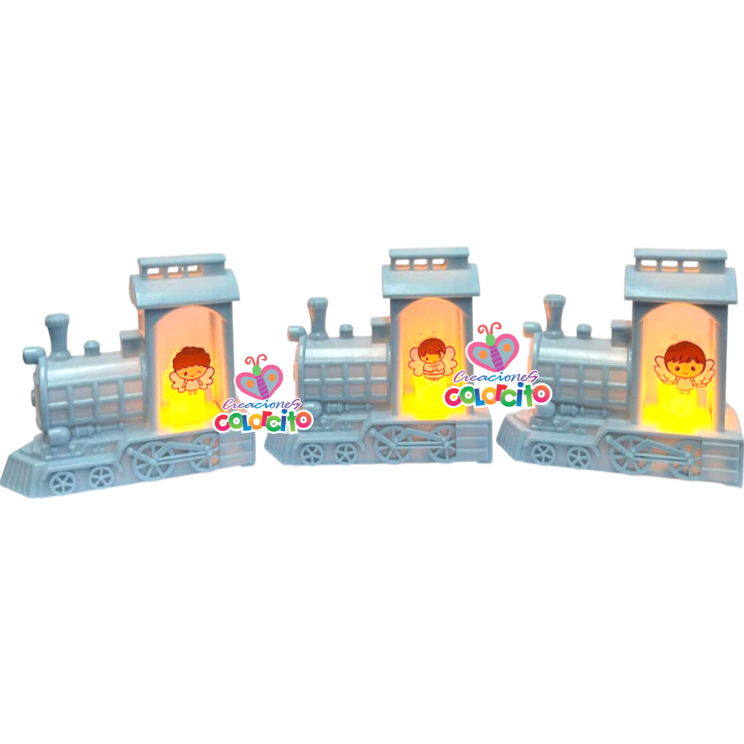 Recuerdos de bautizo. Lamparita led celeste diseño adhesivo angelitas. Viene dentro de su bolsa de organza y tarjeta con los datos. Listas para regalar!!!