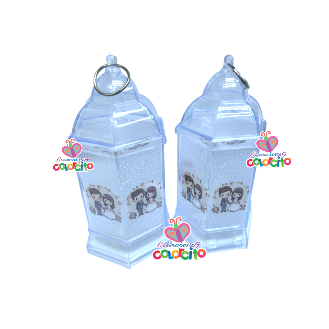 Recuerdos para matrimonio – Lamparita diseño novios. Van en bolsa de organza y tarjeta con los datos del evento. Listas para regalar!!!