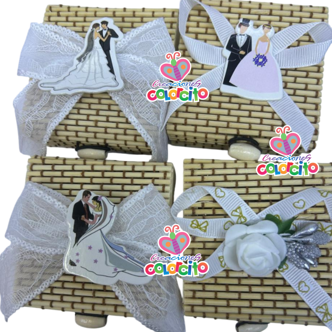 Recuerdos de bodas. Carterita rustica con diseños. Las entregamos en bolsa de organza y tarjeta con los datos del evento. Medida: 7*4cm. aprox. Listas para regalar!!!