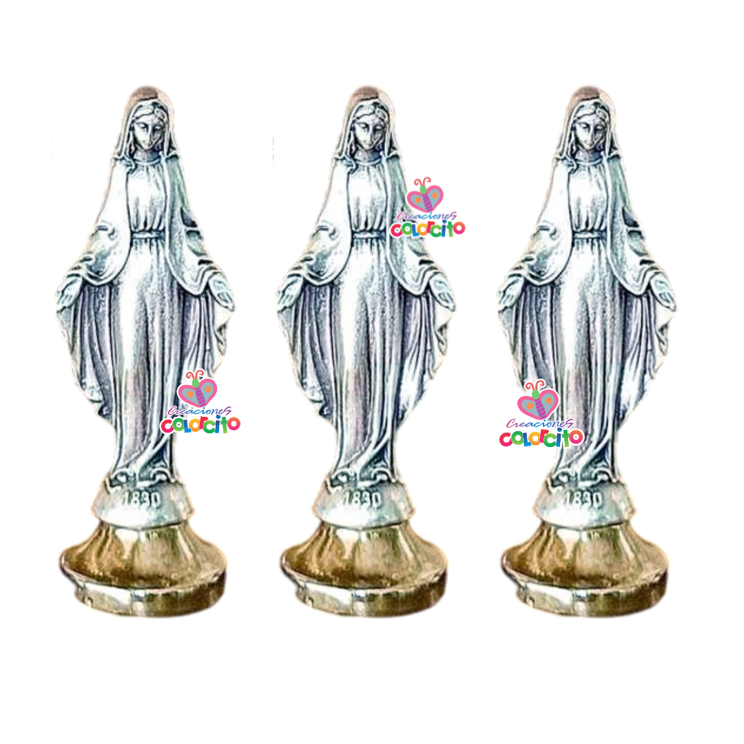 Recuerdos de misa de honras – Precioso estatuilla de metal acabado en plata quemada. Viene con los datos en una tarjeta y en su bolsa de organza. Medida: 6*2.5cm. aprox. Listas para regalar..!!!