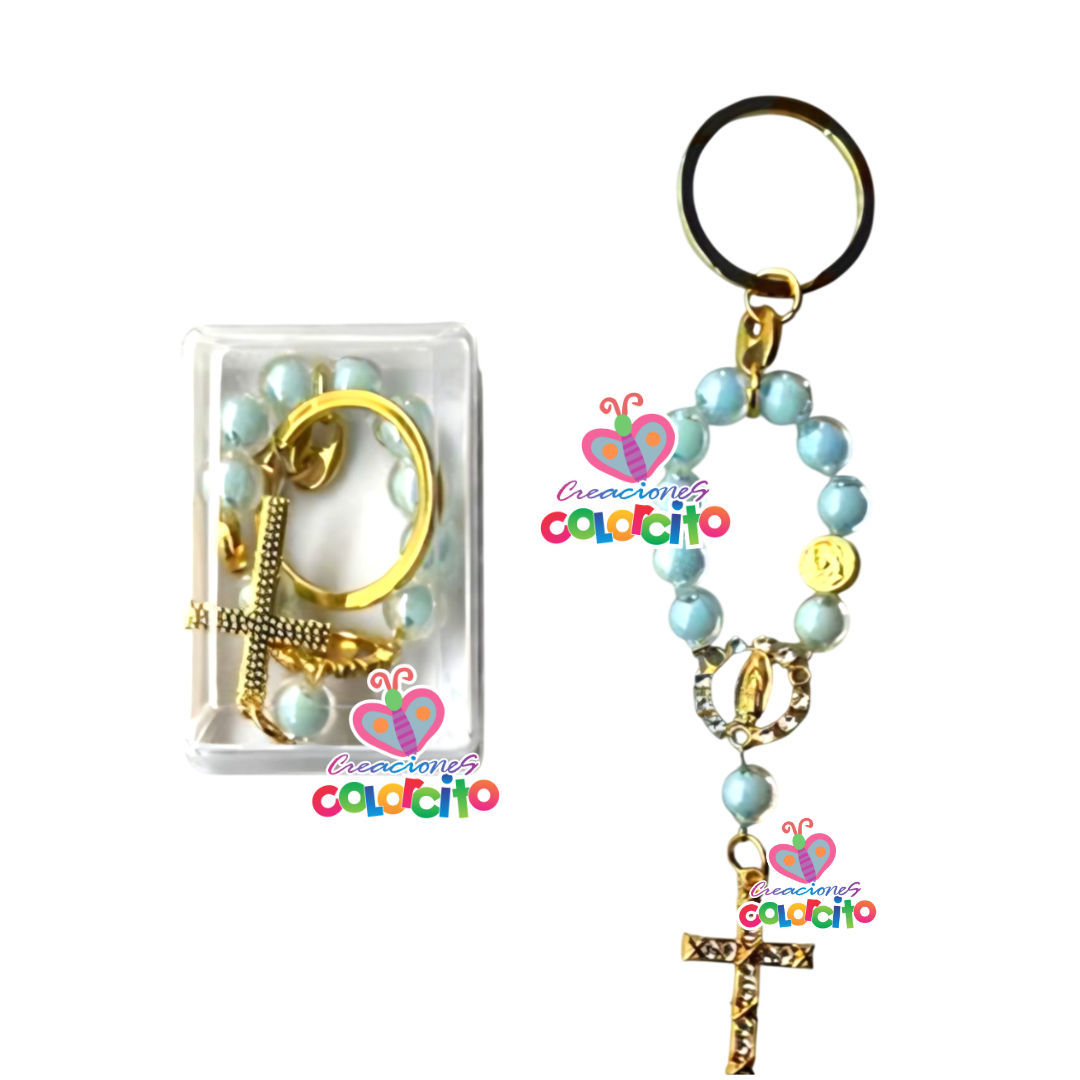 Misa de honras – Llavero denario dorado con billas acrílicas