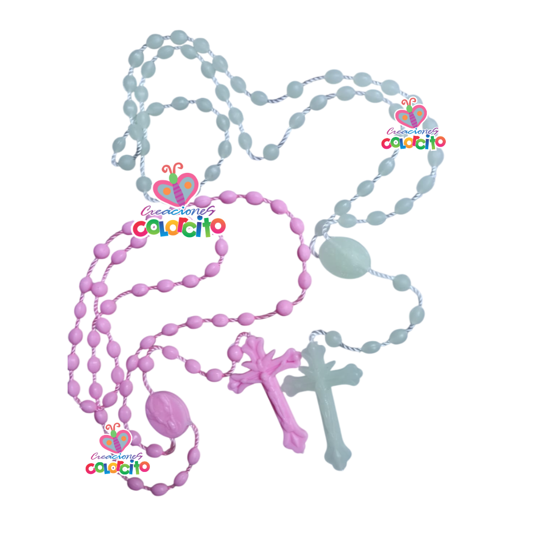 Primera Comunión – rosario acrílico colores, van en bolsa de organza y tarjeta. Listas para regalar!!!