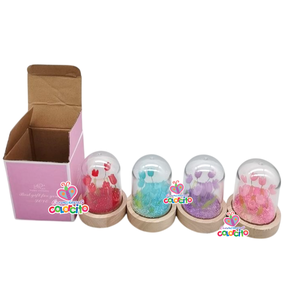 Recuerdos de quinceañeras. Cúpula de flores acrílicas colores variados. Van en caja con lazo y tarjeta con los datos del evento. Listas para regalar!!!
